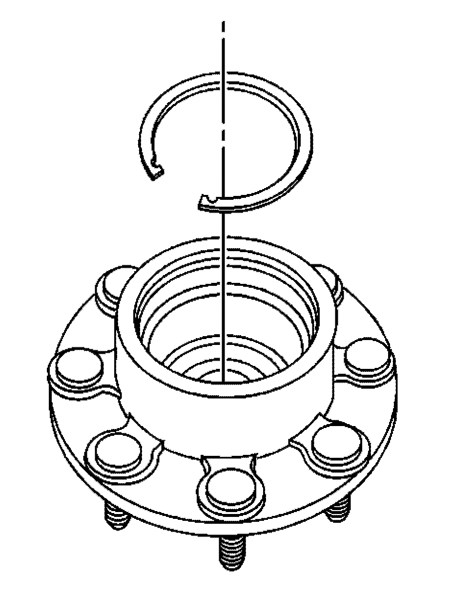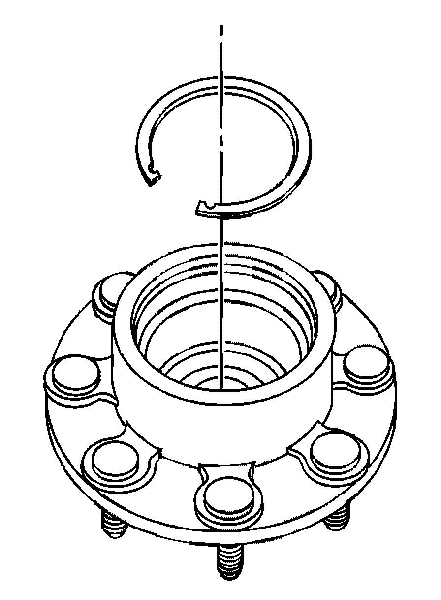 Note: Drive the outer bearing cup into the wheel hub until it is just past the retaining ring groove. Do not bottom out the bearing assembly in the bore.
