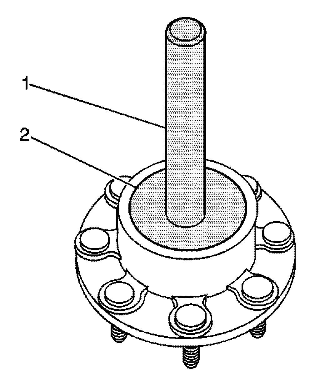 15. For those vehicles equipped with RPO code JH6, use the J 45270 (1) to remove the wheel studs (2).