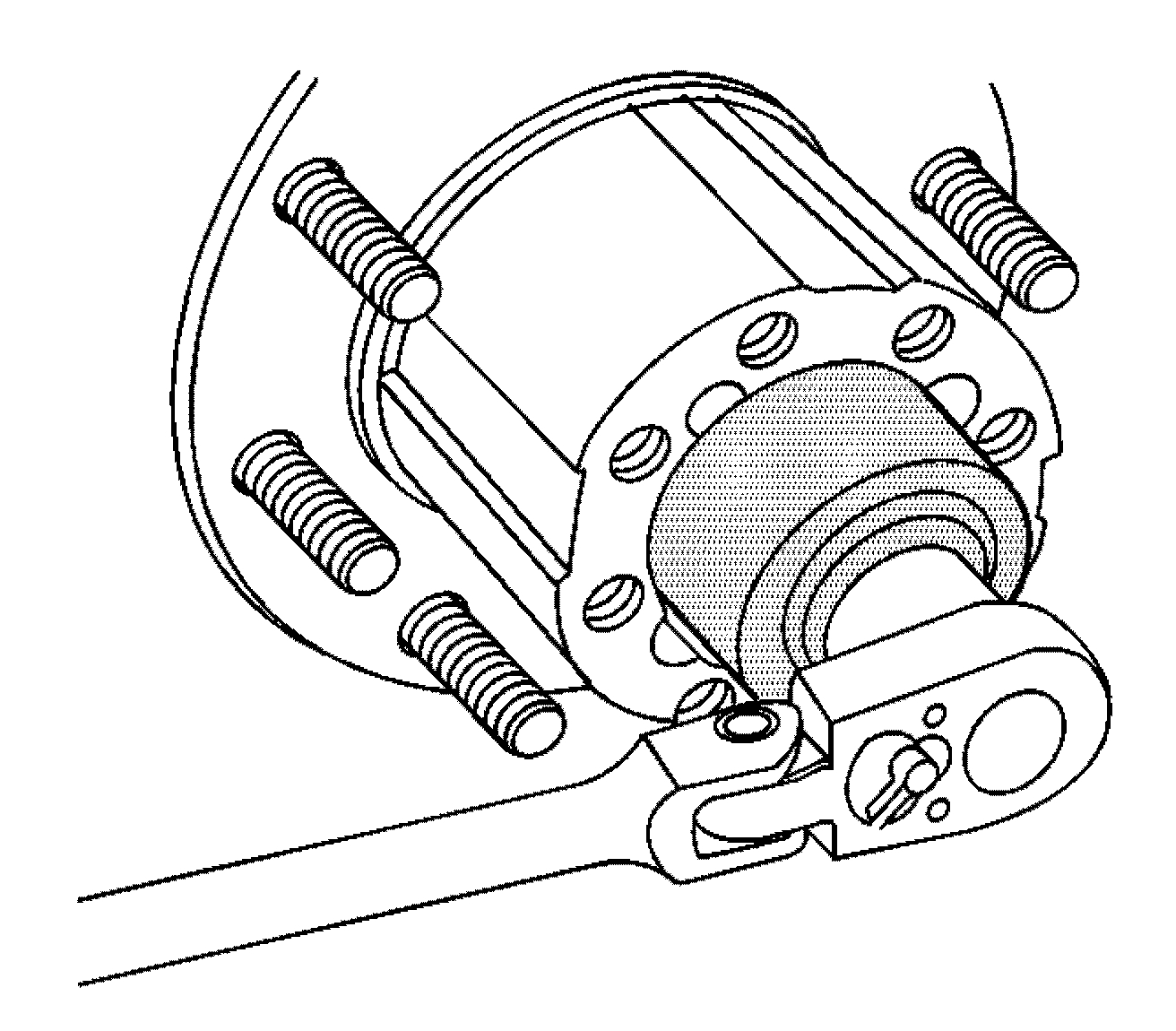 3. Using washers and a wheel nut, tighten the wheel nut until the wheel stud is fully seated in the rear axle hub.