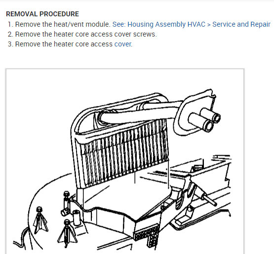 Remove the screws from heater core cover-auxiliary from the HVAC module-auxiliary.