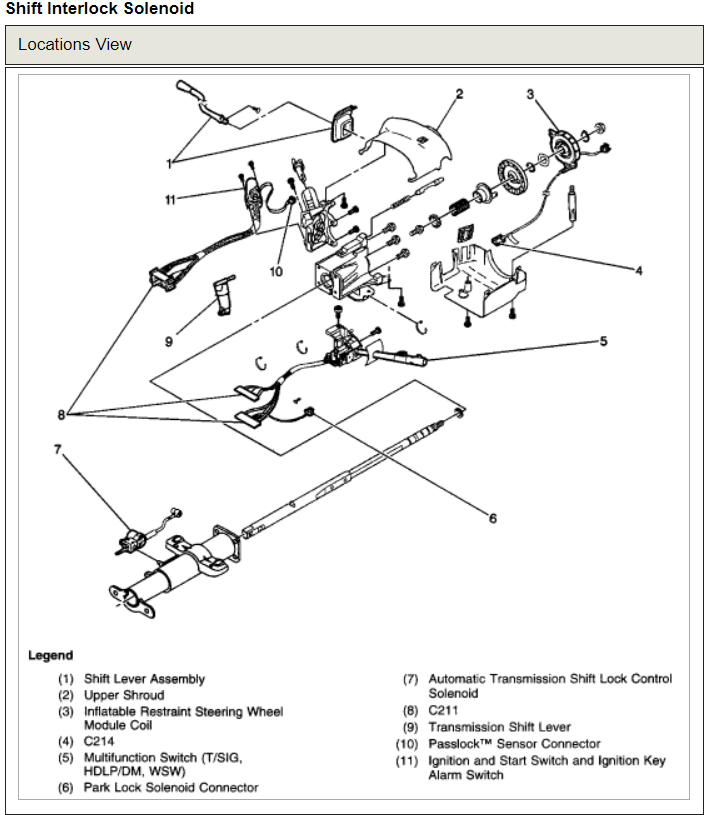 There is a interlock shift solenoid that goes out in these cars which makes it so you cannot shift it out of park. Here is a diagram to show you its location so you can get the problem fixed.