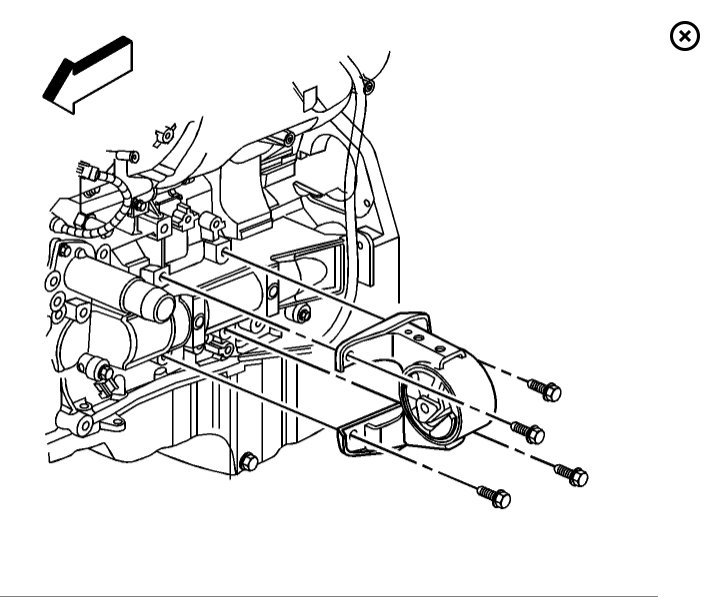 Remove the engine mount-to-frame bracket through bolt for the mount being replaced.