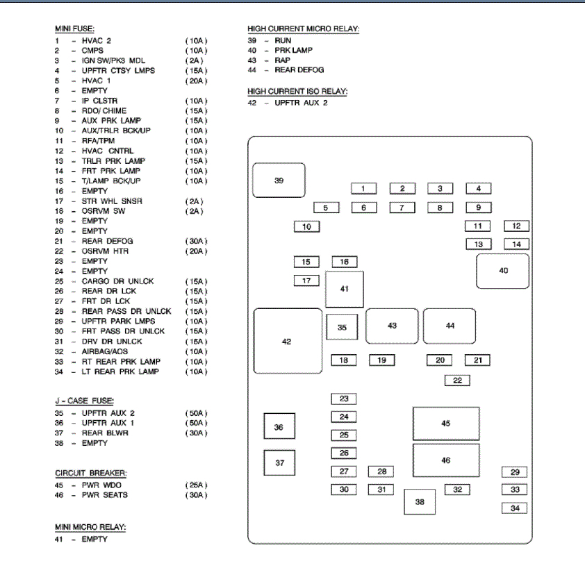 If you look at the attachments below, they provide the fuse box orientations and what each fuse is for.