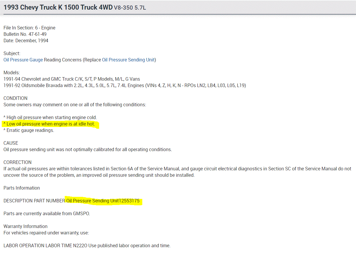 On the other hand, if the mechanical pressure gauge indicates 0 psi, then there are likely internal issues such as worn main bearings, a possible plugged oil pick-up tube, or even a bad oil pump. I have even seen a plugged oil filter cause such issues.