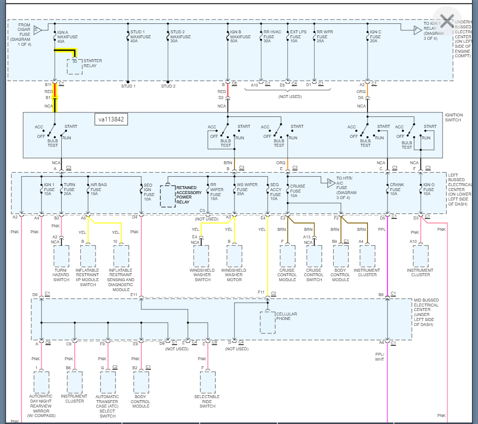 Then the ignition switch. So, if you take a look at the wiring diagram below of the power flow for this circuit we need to find out if any of the other fuses like the ignition 1 or turn fuse are blowing.