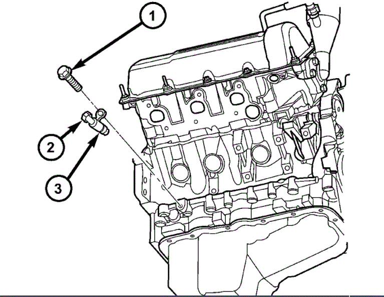 The Crankshaft Position (CKP) sensor is mounted into the right rear side of the cylinder block. It is positioned and bolted into a machined hole.