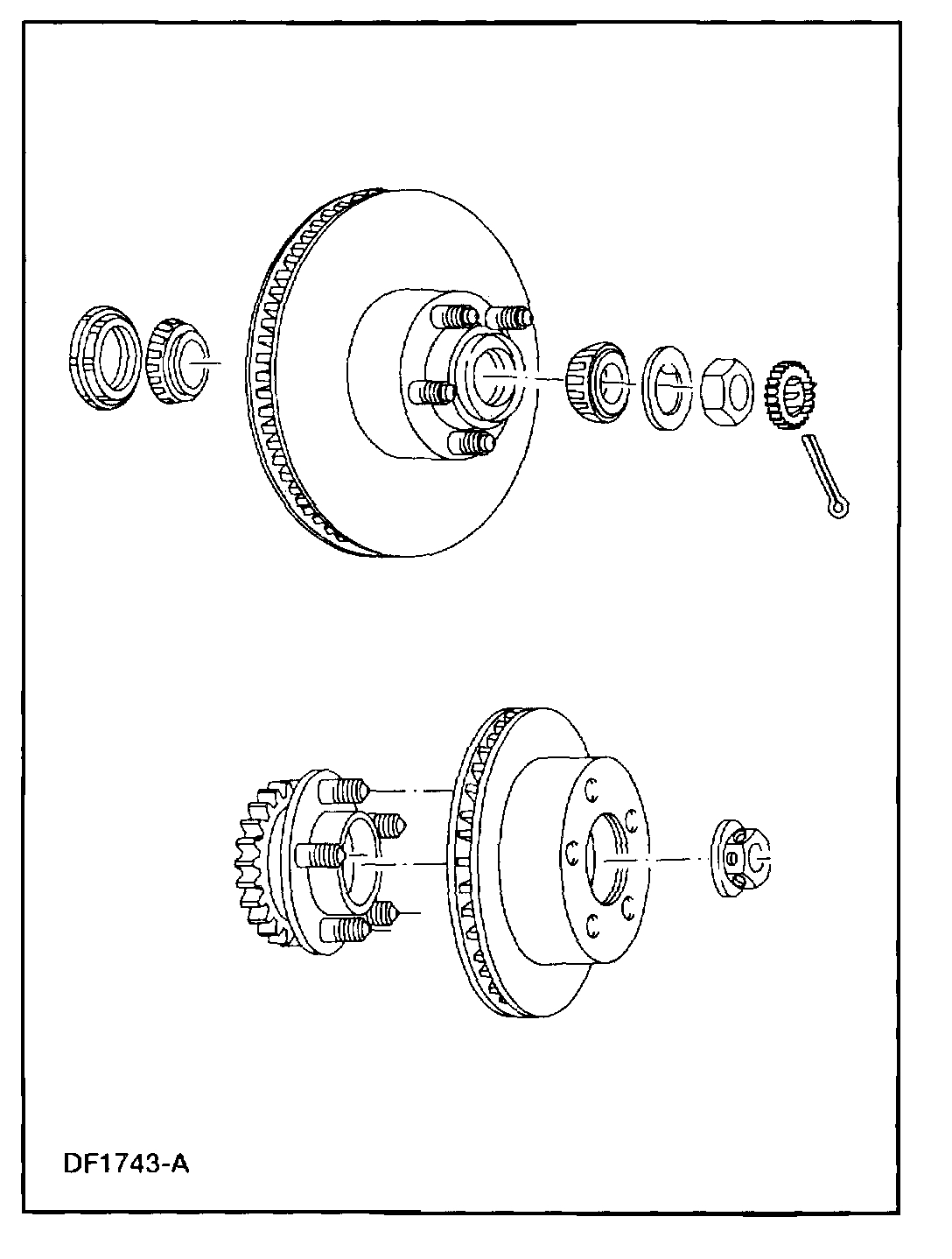 On vehicles with inner and outer bearings, Inspect the bearings and cups for wear or damage. Adjust or install new bearings and cups as necessary.