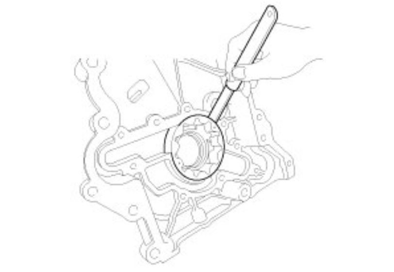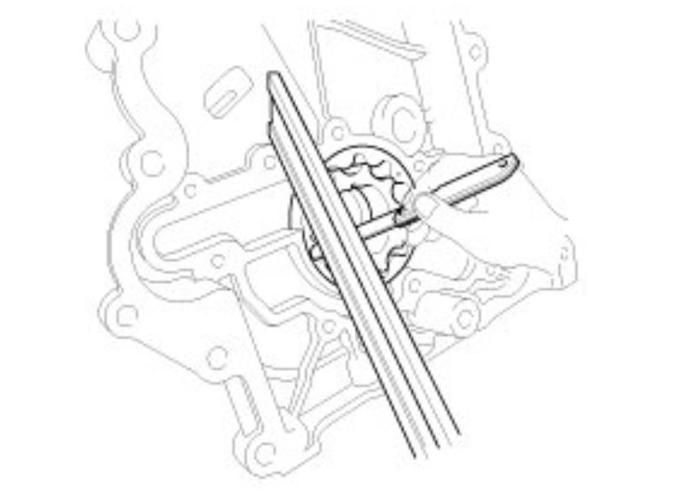 (3)Check the clearance between the timing chain cover hole inner diameter and the inner rotor guide outer diameter.
