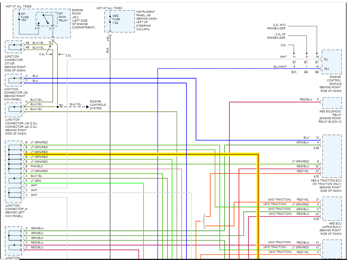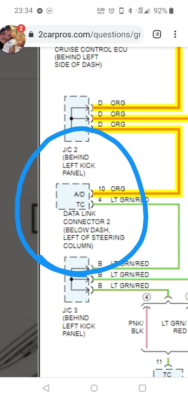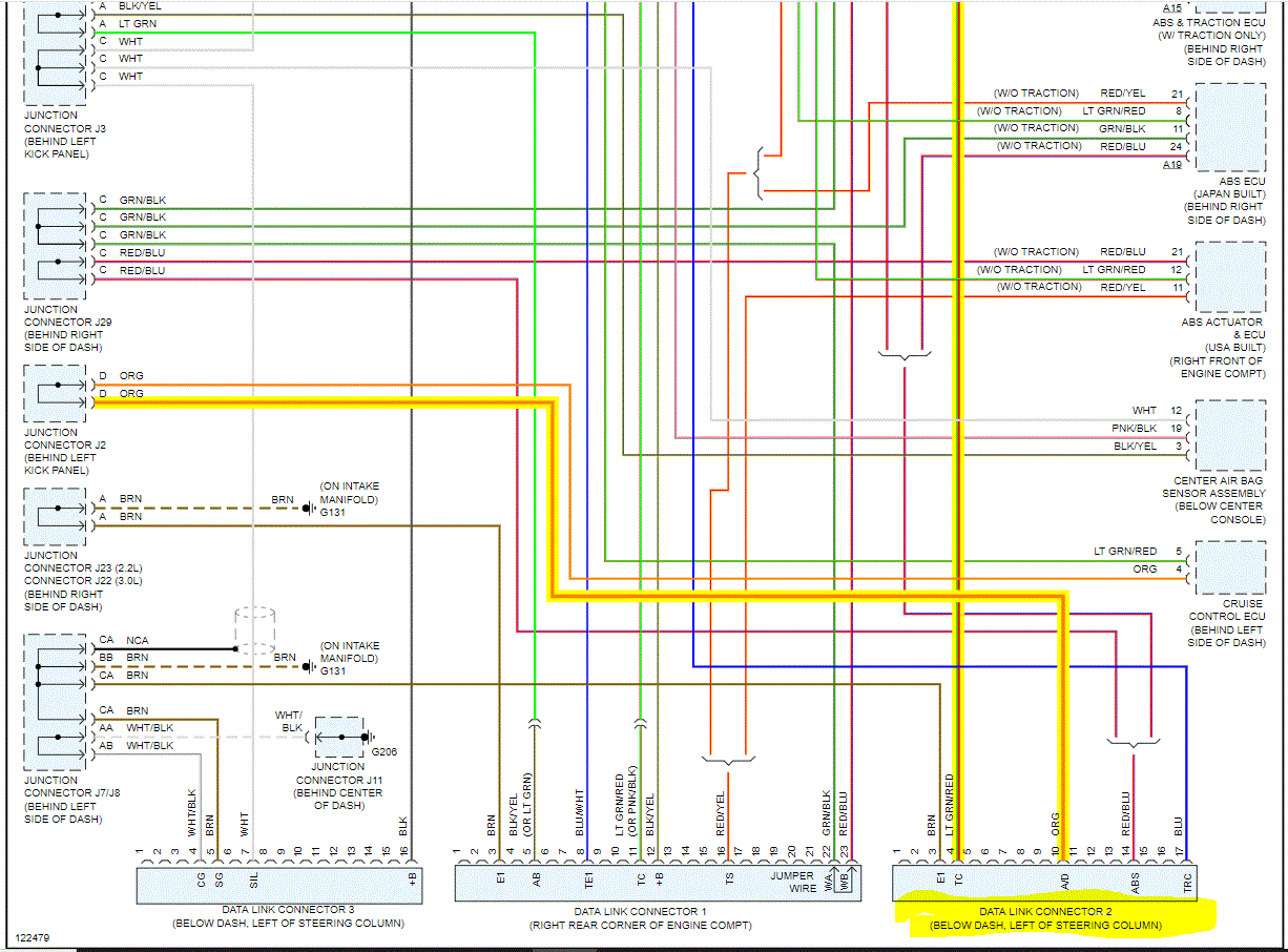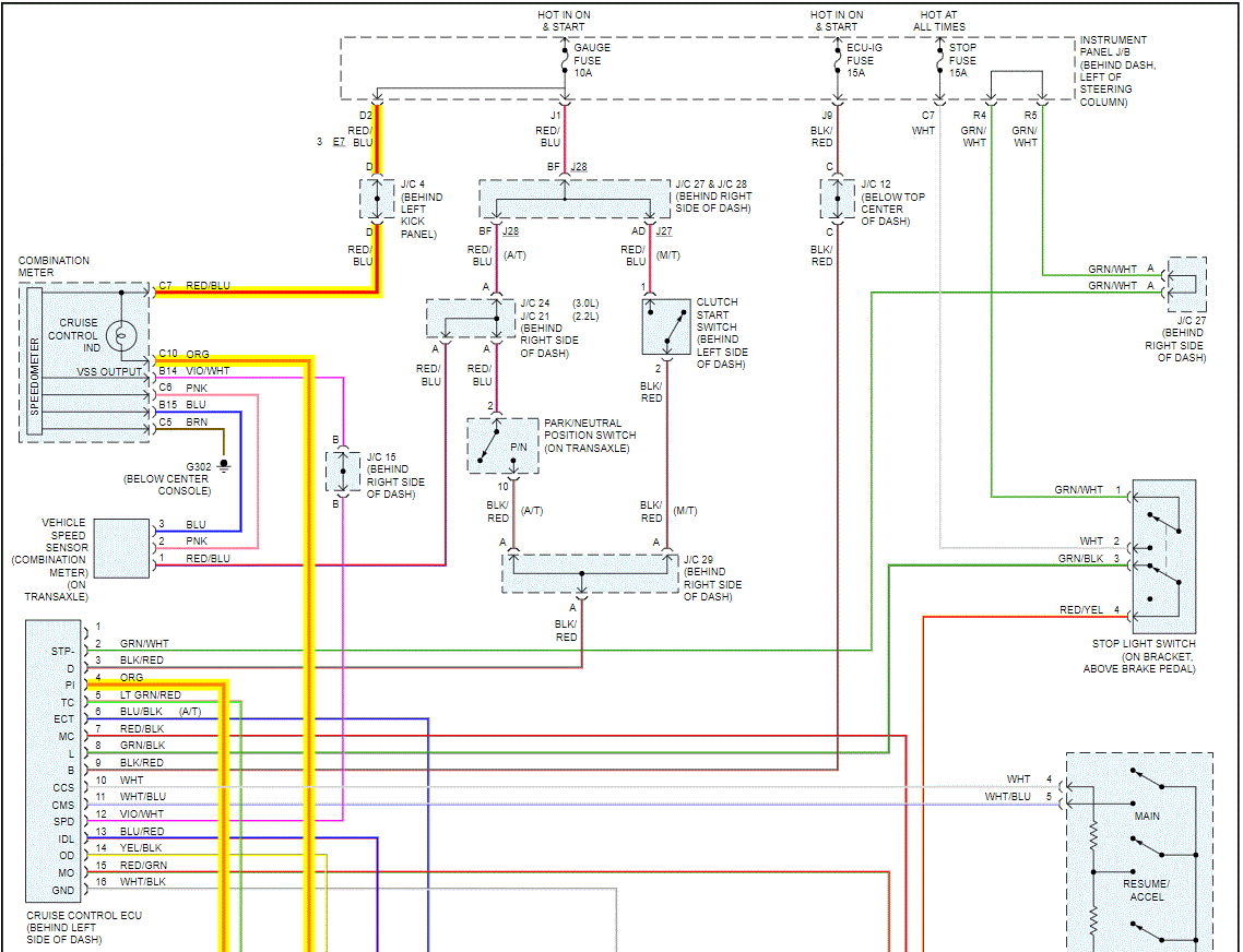 Note: If you follow the orange wire, it runs to the cruise control module.