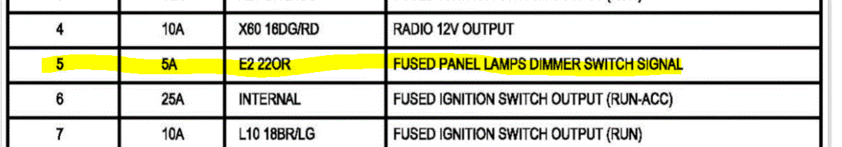 Okay, if they won't turn off with the fuses removed, either there is a short to power or a connection issue at the cluster. Note that I asked you to remove fuse 5 first. The reasoning was to determine if there was a short to power. Fuse 5 is the dimmer switch signal. (See pic 1) Since it stays on, power is coming from something after the fuse.