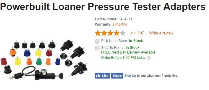 Wow. I don't know where you are located and I don't like to provide any parts suppliers, but I looked quickly and a well known nationally recognized parts store that has the initials A Z have it. Take a look at picture 1. Picture 2 is from the same store and shows the pressure tester as a "loaner." Both picture indicate part numbers.