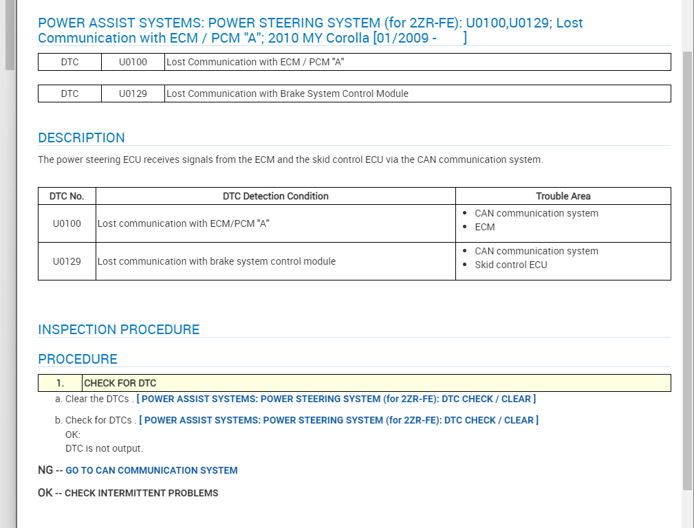 So, we need to start with finding out what you have with this smoke because I am attaching the info on this U code as that is going to be the cause of your power steering issue.