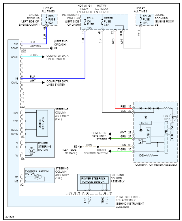 Lastly the reason you have the light turning on and then off and back on is because when you turn the key on, the cluster does a self-check, and it tests the light. So, it turns it on and off. Then the power steering module reports the code, and the cluster displays the light.