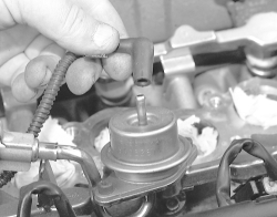 WARNING: Before working on or disconnecting any of the fuel tubes or fuel system components, relieve the fuel system pressure to prevent accidental spraying of fuel. Fuel in the fuel system remains under high pressure, even when the engine is not running. Failure to follow this instruction may result in serious personal injury.