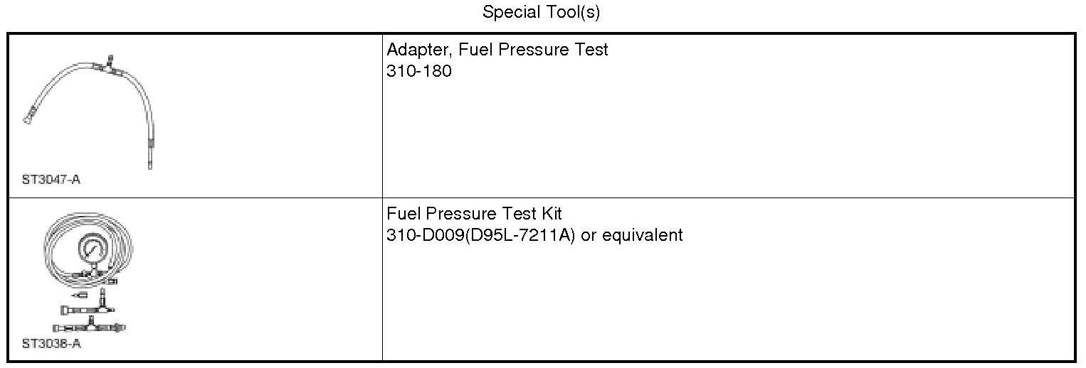 Test the fuel system pressure to make sure it is within the specified range. For additional information, refer to Specifications.