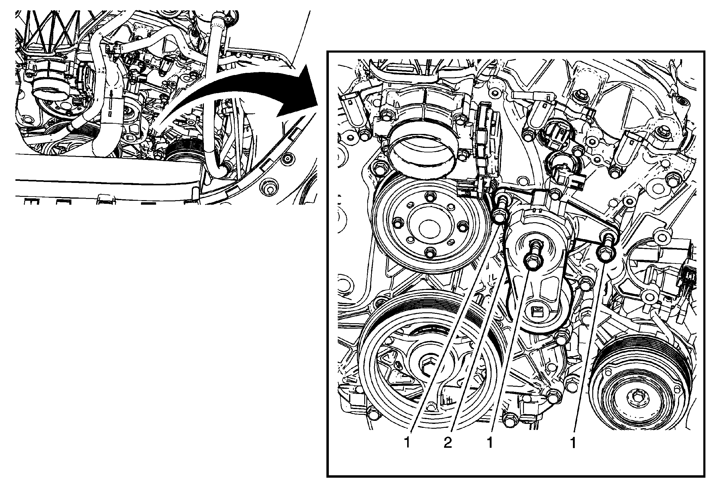 2. Remove the generator drive belt. Refer to Drive Belt Replacement See: Drive Belt > Removal and Replacement > Drive Belt Replacement.