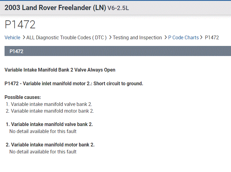 Today it returned 2 codes I don't know what they are or how to fix them. The first code is p1477 my Bosch Scantool says no DTC definition found see service manual. The other is code p1472 with the same description. Anyone know what these codes are and how to fix them?