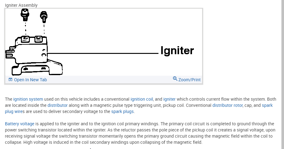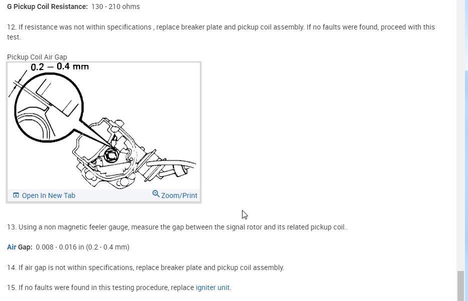 Next, there is a pick-up coil and an igniter which can be the issue. My first suspect would be the pick up coil. The first pic below is a wiring schematic of the ignition system. The remaining pictures correlate with the directions related to the pick up coil test.
