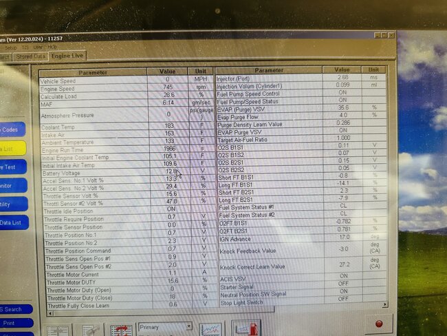 Next, I noticed the MAF reading really isn't changing. Was the engine at idle the entire time? The normal mass airflow (MAF) readings in a car can vary depending on the make, model, and engine type. MAF readings are typically measured in grams per second (g/s) and can range from around 2 to 150 g/s. Yours is staying at 0.6 and really not changing. Has anyone checked the MAF? Does the reading change based on engine load?