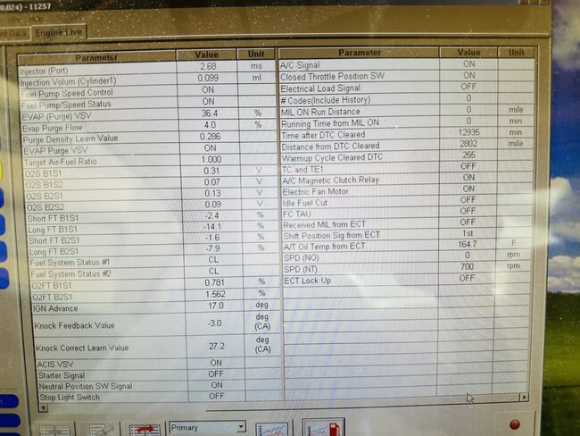 In a perfect world, the fuel trims would be 0%, but that isn't usually the case. I noted the long-term fuel trims stay at -10.4% and then drop to -5%. What was happening when that happened? The idea that they are -10+% tells me the computer is trying to lean the fuel mixture.