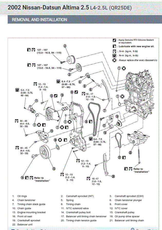 Please keep this in mind. All Nissan engines are interference engines. Correct engine timing is a must. If the timing isn't done correctly, internal engine damage will likely occur.