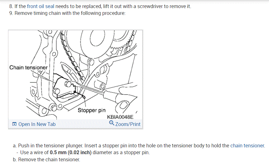 Also, the directions for the timing chain include seal replacement. This would be a good time to replace the crank seal, timing chains, tensioners, and guides. The directions for the chain start with pic 8 below.