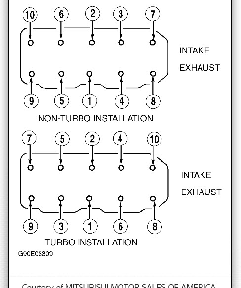 NOTE: The following revised information regarding the tensioner pulley pivot bolt is from Chrysler technical service bulletin 09-06-96; March 29, 1996. Also Mitsubishi technical service bulletin 96-11-004; May 1996.