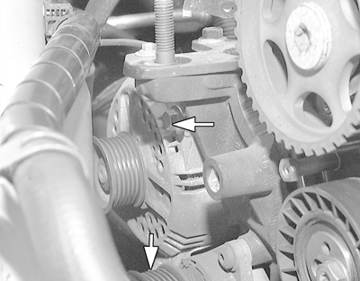 Fig. 4: Adjusting Timing Belt Tension (Hydraulic Timing Belt Tensioner)