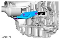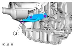 2. Tighten the catalytic converter bracket-to-catalytic converter bolts to 25 Nm (18 lb-ft).