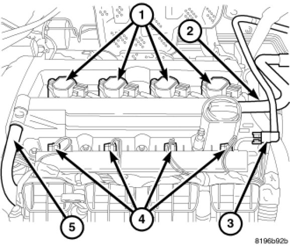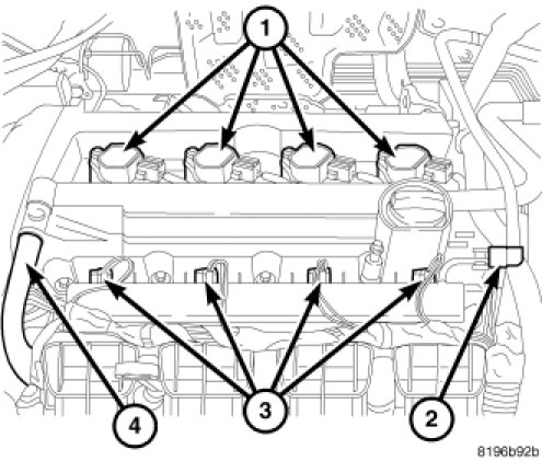 30. Install ignition coils (1) and tighten to 8 Nm (70 in. lbs.).