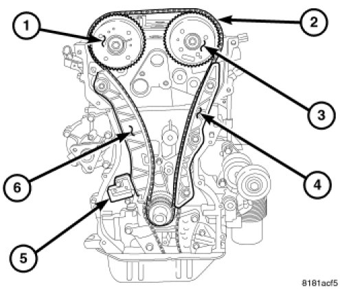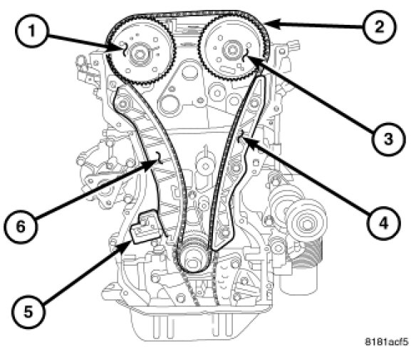 NOTE: If the timing chain plated links can no longer be seen, the timing chain links corresponding to the timing marks must be marked prior to removal if the chain is to be reused.