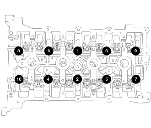 10. Install the cylinder head bolts and tighten in the sequence shown.