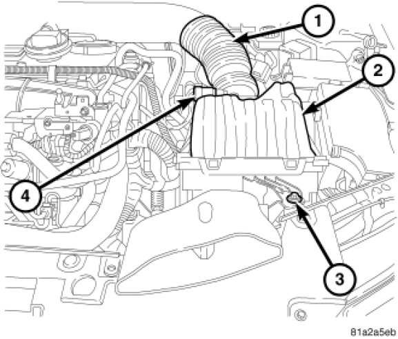 4. Remove clean air hose and air cleaner housing (2)See: Air Cleaner Housing > Removal and Replacement > Air Cleaner Housing - Removal.
