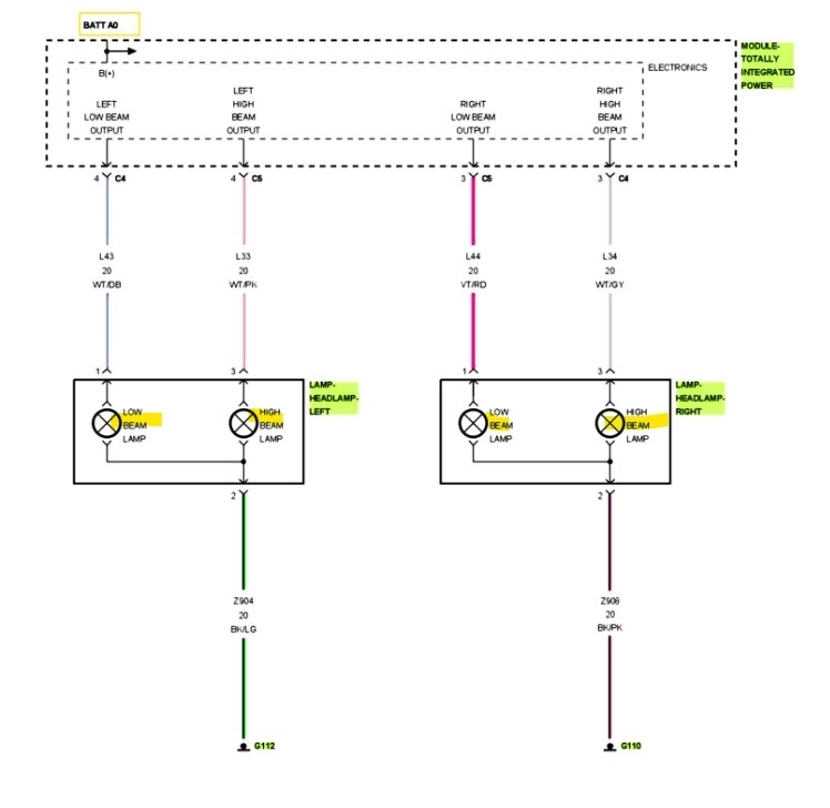 The black/pink wire is the ground for the right side headlamp circuit, try hooking your test light to battery negative and with the bulb plugged in, back probe the ground wire and see if you get any reaction from the headlamp bulb, or run another wire for the ground to battery negative verify it's not a bad ground. Just make sure you're only attached to the black/pink wire, so you don't short out the circuit.