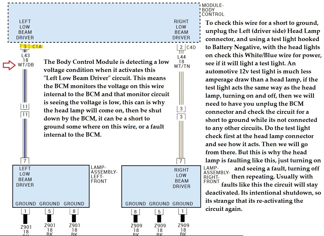 This is the Driver side (left) head lamp circuit, you can see both the high and low beam are controlled by the Body Control Module, there is a Technical Service Bulletin for a software update for the BCM due to head lamps flickering. But it doesn't say anything about just one side flashing, but there are some special operations listed in diagram 3, having to do with the Low beam coming on as a default if no input is detected from the head lamp switch or a loss of communications on the CAN bus network, in either case the BCM needs to be checked for any stored trouble codes, it's the module flashing that head lamp for some reason, it might be that the driver (transistor) inside the BCM for that head lamp is starting to fail, another possibility is these circuits are monitored in some cases for excessive current flow or low current flow and the BCM can shut down certain circuits to protect modules. So that might be what's going on here. You mentioned sometimes it stays on and sometimes not, being that it's not both head lamps, the BCM might be trying to turn on that head lamp, detecting something it doesn't like, shutting it down, turning it back on, and you get this strange cycle happening. But really a scan tool checking the BCM is where I would start, to see in live data if anything looks out of place or codes stored.