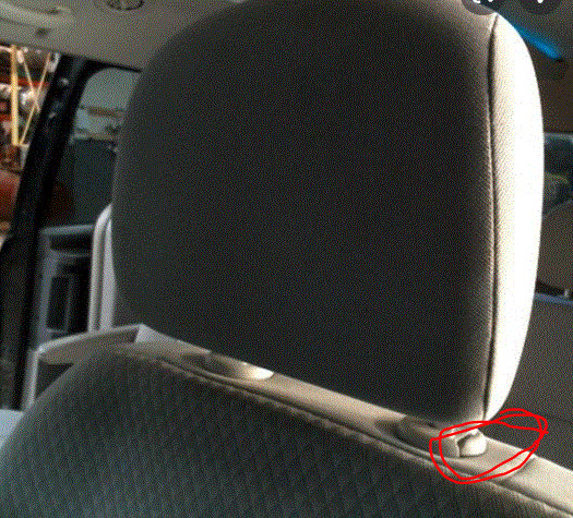 However, I found a pic of one in a Chrysler and attached it below. I circled the release button/lever to lower the headrest. Check to see if there is one similar to that on your vehicle.
