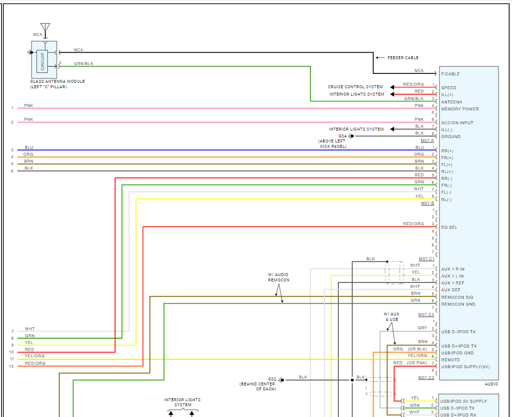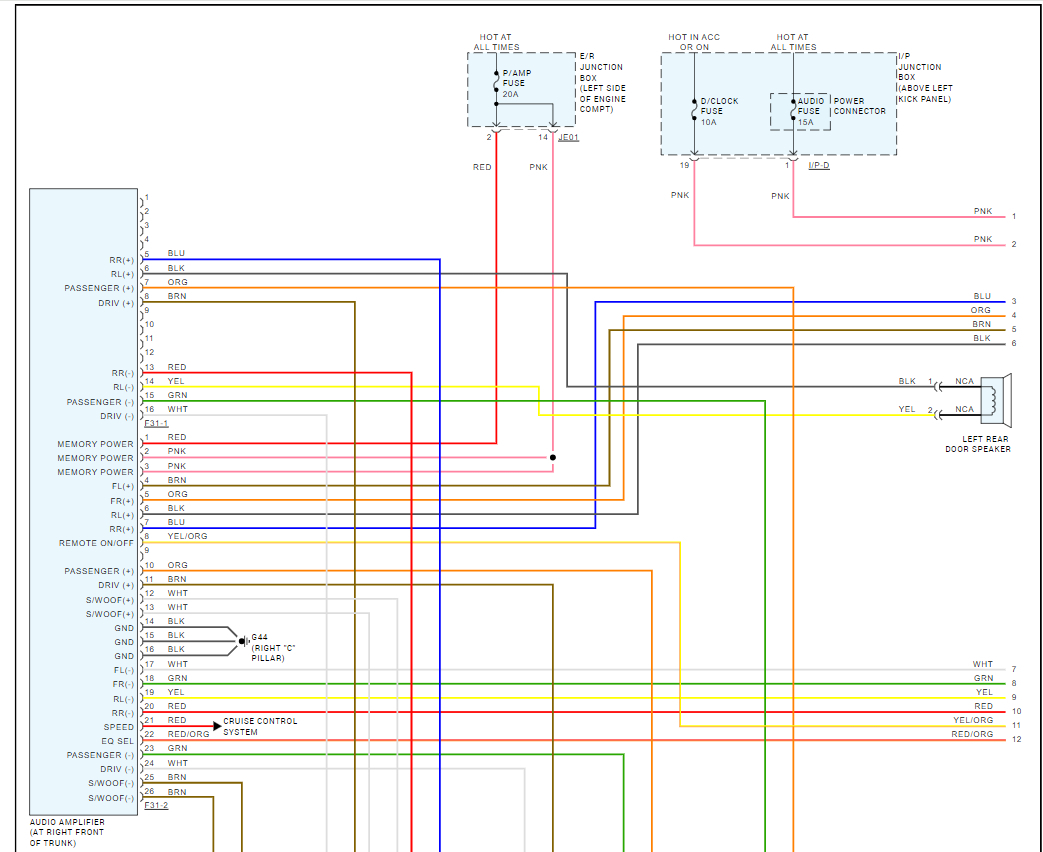 Sure, here are the wiring diagrams for the radio w/cruise and an amplifier. Check out the images (below). Let us know if you need anything else.