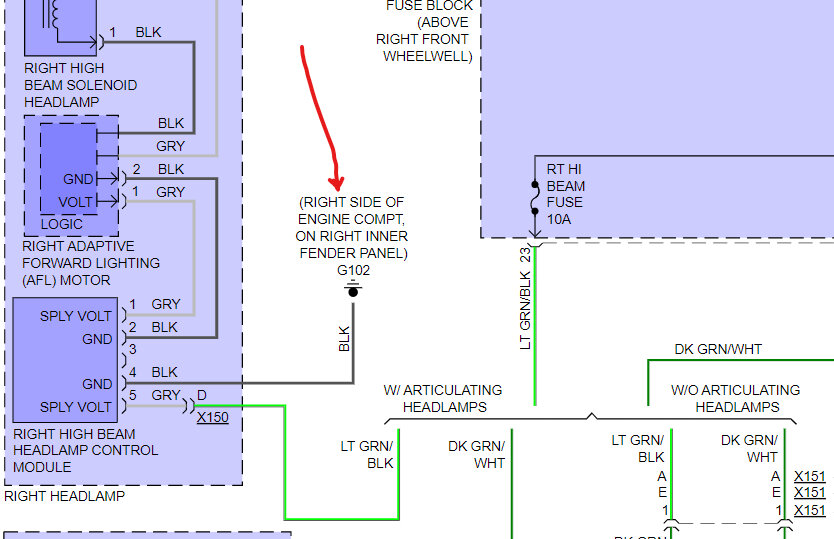 When I noticed my right front headlight was not working, I got to the back of my headlight assembly removed plug going into assembly and reinstalled it. Now the headlight works, but now when I put my right turn signal the headlight flashing with the turn signal, when I put the high beams on the high beam doesn’t work on right side and low beam doesn’t work either. All the bulbs are correct. Also, when the turn signal is on the front turn signal gets very dim when the headlight is flashing. Also, I’m wondering if my headlight assembly is causing this problem, because when I looked first when I had a problem the headlight was not working, or it was very dim and parking lamp was very dim. When I removed the plug from assembly everything seemed to be fine, but then when I put the right turn signal the headlight was also flashing with the turn signal on right side.