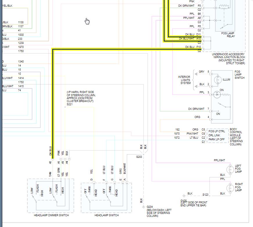 The way to test this, is turn the lamps on and test for voltage on the Dark Blue wire coming out of the switch. If power is there, then go to the under hood junction block. Where ever you don't have voltage is the issue. The other way is to go to the head lamps and measure voltage when the lamps are on and see if you have voltage. If you do then you could have two bulbs burnt out.
