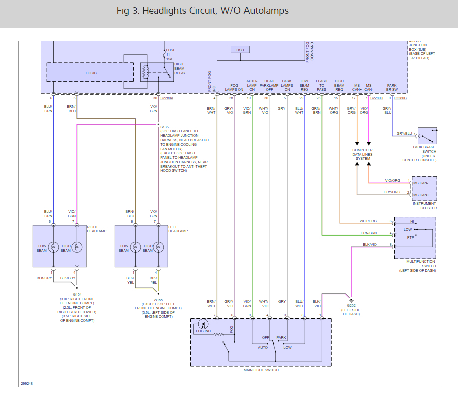 3. Remove the 4 bolts and the headlamp assembly. Disconnect the electrical connectors.