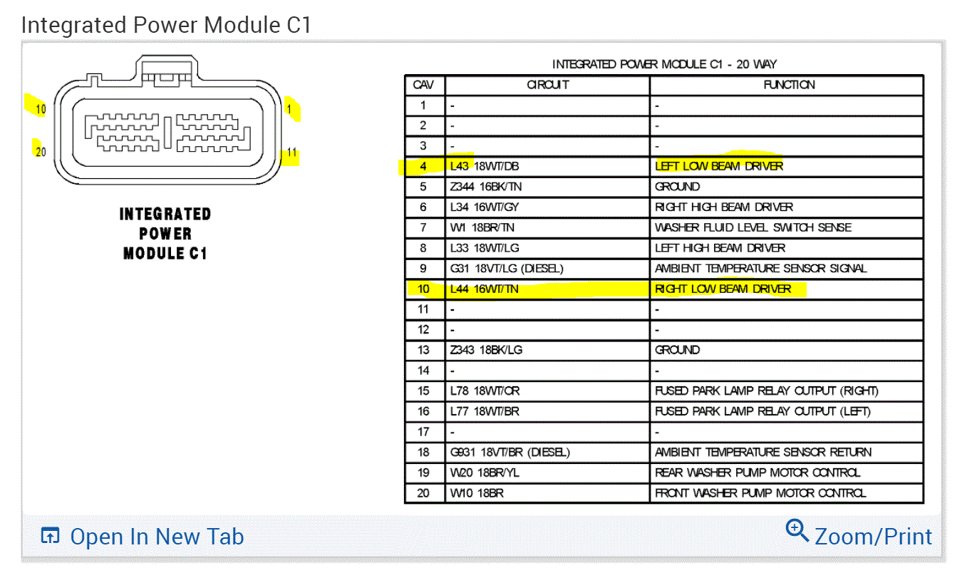 If there is power, there is a good chance the bulb (which is a dual-element bulb) may have a bad filament for the low beam. If there is no power, then we need to go to the TIMP and perform testing. The TIPM is part of the fuse box under the hood and is where you place fuses (power distribution box).