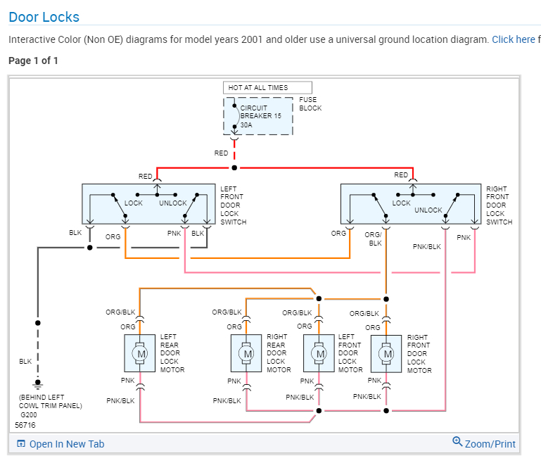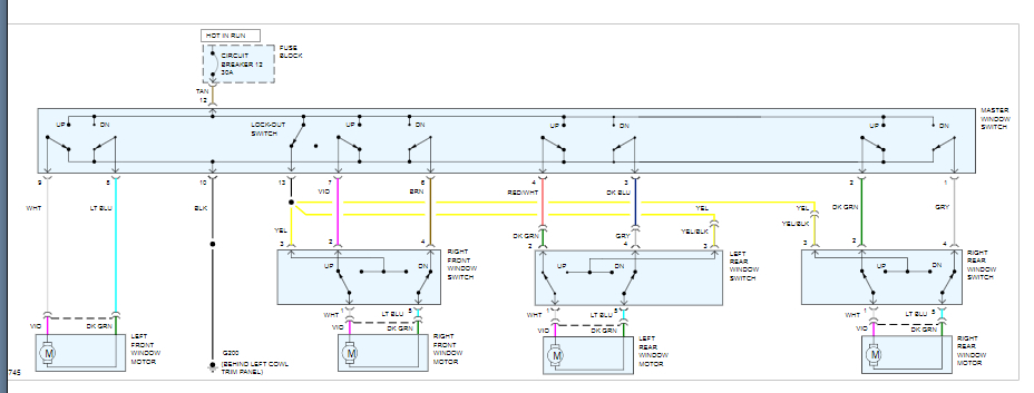 Power window and lock problems can also be caused by broken or frayed wires between the door hinges. That is a good place to start for those two systems. If you find that to be the case, I'll describe how I repair them. Because both systems are considered safety systems, they're protected by auto-resetting circuit breakers instead of fuses. One potential clue to broken wires being shorted together between the door hinges is if you press the lock or unlock switch and hold it for a a few seconds, then feel the circuit breaker, it will feel warm. These circuit breakers don't fail very often on their own, but if the feed wire is shorted to a ground wire between the door hinges, that breaker will be constantly tripping and resetting, and that could lead to arced contacts, then a total failure.