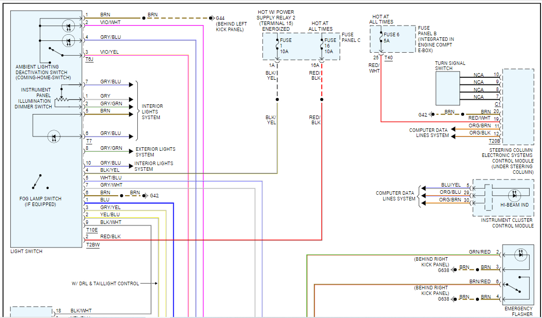The brown wire is the ground source for the lights. I need you to check it for continuity to ground.