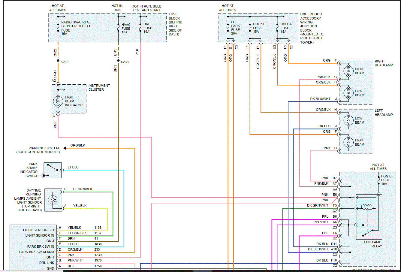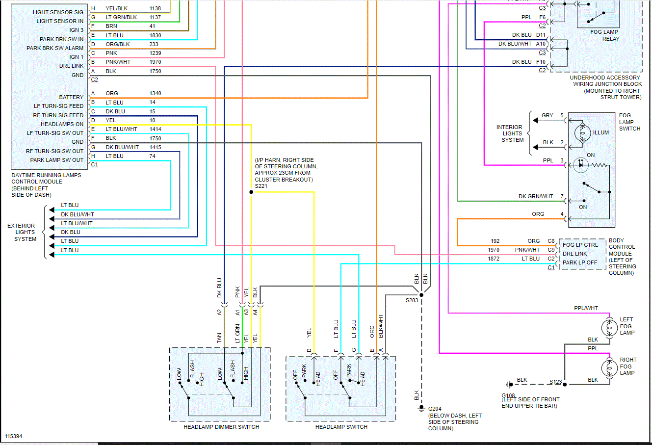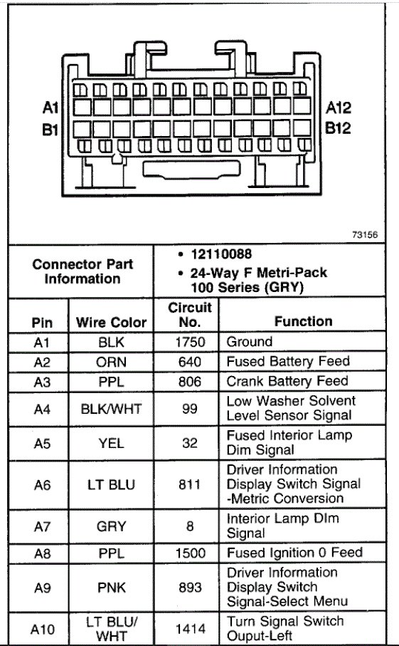 Marker and tail lights okay. From research I'm thinking it's the multifunction turn switch; I'd rather bypass the dimmer switch, but the i/p harness to steering column harness connector has different wire colors for the pins from the diagram I found. Do you have the correct one and/or any ideas?