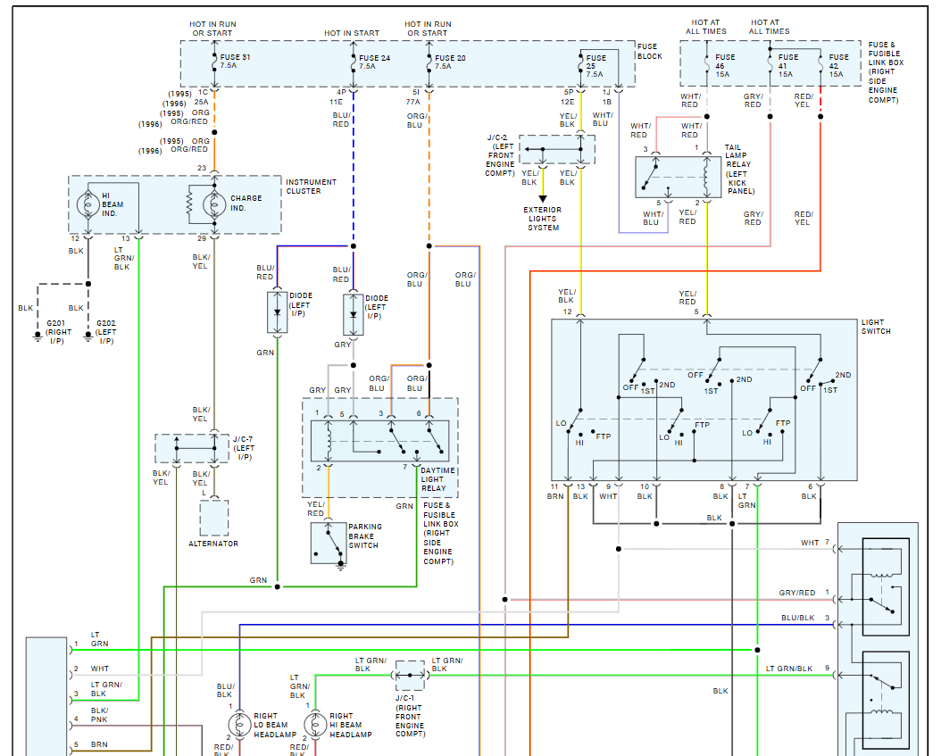 Sure, it can be a couple of different problems but let's start with the easy stuff, please check fuse # 25 7.5 amp and fuse #56. Here is a guide to help and the fuse locations in the image below. If the fuses are okay, I would try swapping out the taillight relay. Here are the wiring diagrams for the switch as well so we can test through it.