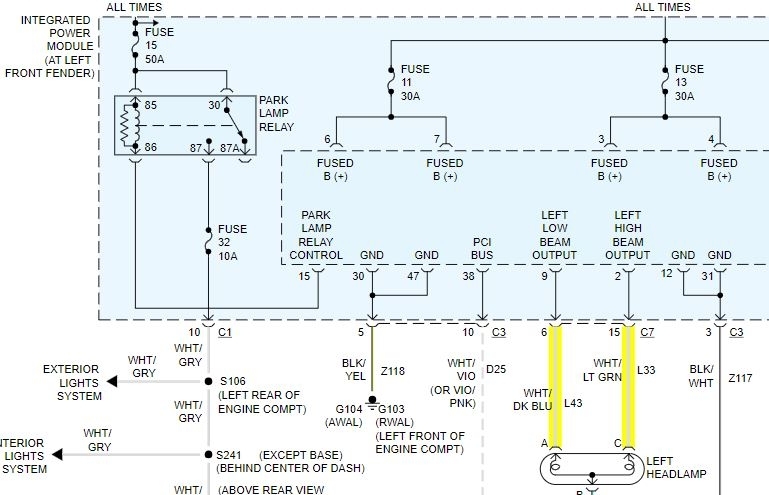 I have attached a picture which shows which pins on the C plug are responsible for the left head lights. See picture 5. Disconnect the connector and check the pins for deterioration. Picture 6 correlates with the wiring schematic to show which pins are for the left high and low drivers from the TIPM.