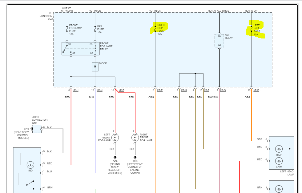 On the other hand, both have a tail lamp relay and a fog lamp relay. Also, each headlamp has a separate fuse. See pic below.