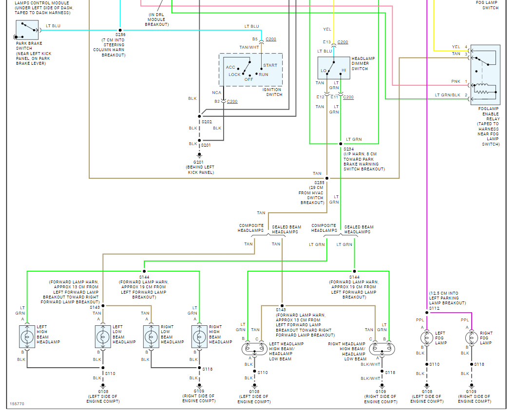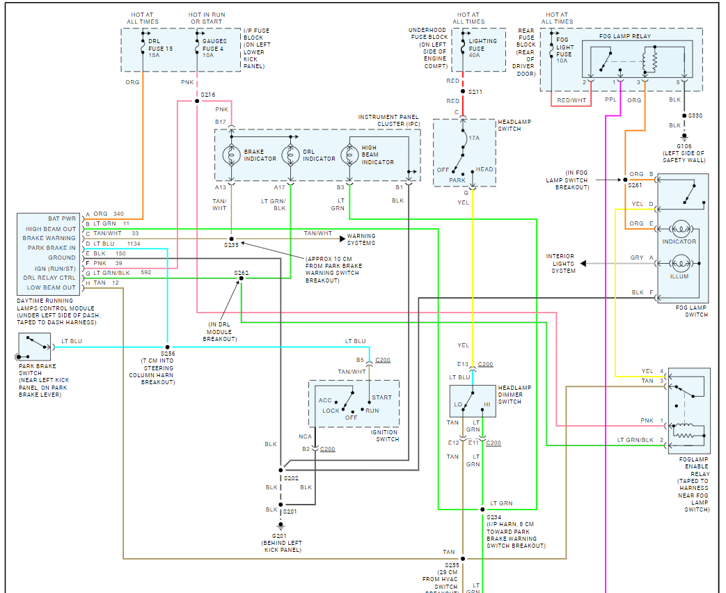 The vehicle listed above is a 1500. I got with the previous owner who stated that at one time there was a problem with both headlights going out at the same time. He took it somewhere and this is what they did. The headlights are currently working when manually turned on, but I have no daytime running lights. They cut the white wire and installed a fuse under the hood by the master cylinder and ran a black wire through the firewall to the back of an electrical connector under the dash. Maybe the DRL module was shorting out and they by passed it? Or something with the headlight switch itself?