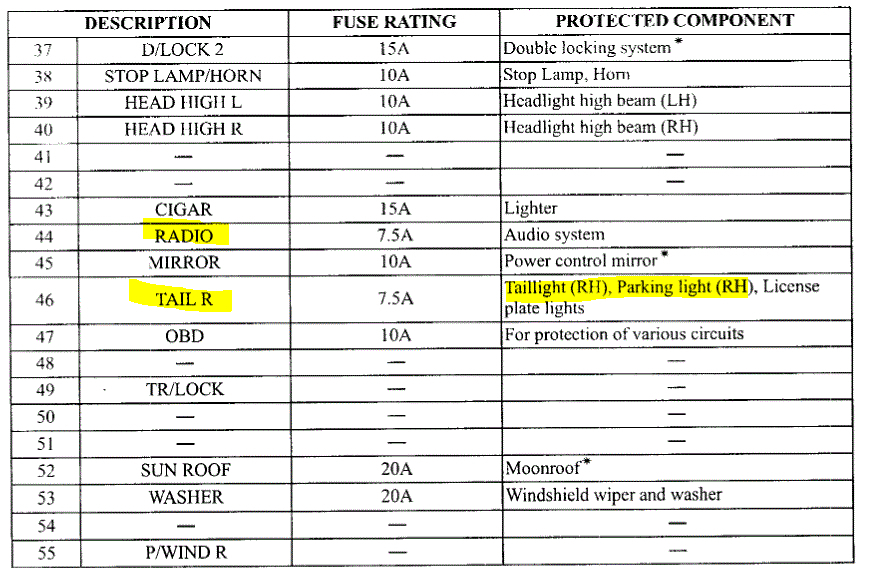 Pics 2, 3, and 4, I highlighted the fuses I'm referring to and showing the location. It's interesting that the audio fuse is only two fuse locations away from the fuse for the right parking lamps. Double-check to make sure nothing is shorting them.