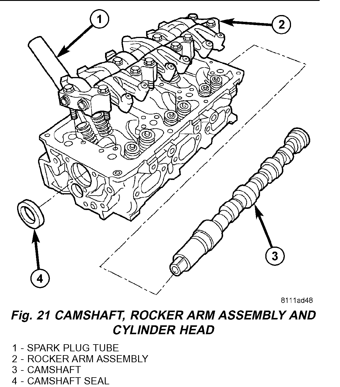 CAUTION: If camshafts have moved from the timing marks, always rotate camshaft towards the direction nearest to the timing marks (DO NOT TURN CAMSHAFTS A FULL REVOLUTION OR DAMAGE to valves and/or pistons could result).